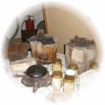 tafeltje staan met ondermeer wat onderdelen van de maalstoel er op. De onderdelen die