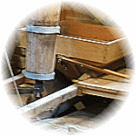 er af en de stutten uit het bovenwiel. In deze molen zitten vaste stutten met scharnieren,