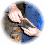 van donker, vettig pokhout. Let ook op de klodder reuzel die je boven