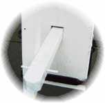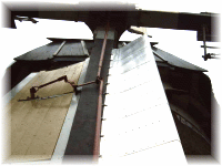 Het systeem bestaat uit een vertikaal scharnierende klep, die middels een systeem van stangen dicht en open getrokken kan worden. Normaal is die klep dicht en heb je als het ware het equivalent van een opgezeilde Oud Hollandse wiek (met volle zeilen). Als het wiekenkruis nu voldoende snel rond gaat, wordt door centrifugale kracht via een stelsel van stangen de klep gedraaid, zodat hij dwars komt te staan en zo de molen afremt. Daardoor is er weer minder centrifugale kracht en valt de klep dus weer dicht. Dit zelfzwichtingsysteem wordt meestal maar op 1 roede aangebracht. Op de foto zie je ook de Van Bussel neuzen - een uitvinding van inderdaad een meneer Van Bussel die de aerodynamische eigenschappen van de roeden probeerde te verbeteren. Het systeem lijkt veel op een soort vliegtuigvleugel die aan de roede vast is gemaakt en geeft heel veel extra rendement. De Agneta heeft juist een renovatie ondergaan en het aluminium glimt nog in de zon, wat de molen een wat futuristische uitstraling geeft. Zoals de oplettende lezer merkt is bij deze molen veel aandacht besteed om veel energie uit de wind te kunnen halen. Dat doet vermoeden dat het hier om een zware werkmolen gaat en dat is ook zo: Agneta is als houtzaag- en korenmolen in gebruik. De eerlijkheid gebied dat in perioden van minder windkracht (onder 5 bft) een elektromotor wordt ingezet om hout te kunnen zagen - ondanks al die verbeteringen is het zagen van hout een te zwaar werk voor de molen als de windkracht geringer is. Vanaf 1982 had de molen op alle roeden fokwieken en naar verluid kon de elektromotor toen maar node gemist worden - het rendement bleek toch geringer dan verwacht. Daarom zijn er bij de laatste renovatie weer Van Busselneuzen geplaatst. Een oude molenaar die nog wel op de molen kwam vertelde altijd dat hij nog had meegemaakt dat Van Bussel op alle vier wieken werd gebruikt en dat de molen in die tijd ook bij zeer geringe windkracht kon malen en zagen. De molen is in eigendom van molenmaker Vaags. Zodoende worden op deze molen regelmatig ook molenonderdelen gezaagd: toen wij er waren lag er juist een lange schoor op de zaagslede, maar ook worden er bijvoorbeeld wel voeghouten (rond)gezaagd. Een deel van de schuren die onder de molen staan zijn in gebruik als commerciele houtzagerij, maar de molen en het bijbehorende zaagraam worden beheerd door een stichting en door onbezoldigde molenaars aan het werk gehouden. Deze stichting heeft ook een eigen website.