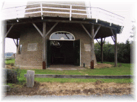 De Hollandsche molenDe molenaar van deze molen ontving ons ook al hartelijk en leidde ons met duidelijk plezier rond in "zijn" molen. Helaas hadden we niet zo heel veel tijd meer - al met al waren we nogal uitgelopen - en dat is eigenlijk wel jammer, want ook in deze molen was weer van alles te zien. De molen is relatief jong: ze is in de jaren dertig van de vorige eeuw gebouwd, als vervanger van een in een zware storm gesneuvelde standerdmolen. De cycloon, die indertijd het hele dorp zwaar beschadigde, had de molen volledig platgedrukt. Op een trieste foto die je in de molen kunt bekijken zie je de toenmalig molenaar voor de resten staan. De foto is gemaakt in een tijd dat mensen nog niet geleerd hadden de media te bespelen, daarom maakt de duidelijk ontdane houding van de man des te meer indruk. Geen wonder: daar ligt zijn werkgezel, onherstelbaar beschadigd en geen mens die nog weet of-ie ooit weer zal draaien. En het mocht inderdaad niet meer zo zijn. Maar dankzij de indertijd nog jonge vereniging "De Hollandsche Molen" werd er toch weer een molen gebouwd: een stenen torenmolen met een stelling, bedoeld voor het malen van graan, die als naam de naam van de nog zo jonge vereniging kreeg.