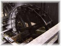 Het grote voordeel van zo'n aandrijving is dat je eigenlijk altijd, gegeven water dan, kunt malen. Geen getuur in de lucht of er wel wind komt, of deze wel betrouwbaar is en of er geen onweer komt. Als er maar voldoende water in de bovenloop staat en de sluis te openen valt, is er te malen. En dat is bij deze molen eigenlijk altijd het geval. Wij molenaars in opleiding, die immers lessen op een poldermolen, verzonnen enthousiast ter plekke een geheel nieuw type molen: de watergedreven poldermolen. We probeerden een situatie te bedenken waarin het plausibel was om zo'n molen te bouwen, maar slaagden daar niet in. Als u zo'n molen kent hoor ik dat graag, dan wil ik daar wel een dagje molenaar zijn! Maar er zijn meer voordelen aan zo'n watermolen: je kunt heel eenvoudig een maal paling vangen. Ook op poldermolens had de molenaar vaak het recht om fuiken te zetten en bij deze molen is het nog veel eenvoudiger opgelost: de middenste sluis drijft geen waterrad aan, maar loopt uit in een bak, gemaakt van latten, waar het water wel, maar de vis niet uit kan ontsnappen. Het was een kwestie van openzetten en afwachten. Tegenwoording wordt dit niet meer gedaan, omdat de vissers, die je steevast om zo'n molen ziet staan, dan geen vangst meer overhouden. De watermolen bestaat uit twee schuren, elk aan een kant van de stuwdam. De ene schuur bevat een olieslagerij, de andere schuur een korenmaalderij. Toen wij aankwamen werd er juist meel gemalen: het gebouwtje schudde op zijn grondvesten. Hoewel de aandrijving dus iets anders verloopt dan bij de windmolens is de overige opbouw toch weer vertrouwd: rondsels en kamwielen die uiteindelijk maalstenen aandrijven. De maalderij heeft trouwens zelfs twee waterraden, de olieslagerij heeft er één. Als je zo binnen staat valt de grote constantheid van de aandrijving op, het is net of ze buiten ergens een electromotor hebben neergezet die de boel aandrijft. De olieslagerij is groot en ruim: je kunt alle delen in die grote schuur goed bekijken. De "olieschuur" is overigens niet origineel meer: hij is net na de oorlog in een watervloed weggespoeld en in de vijftiger jaren herbouwd. Helaas werd er toen wij er waren net geen olie geslagen, al werd tijdens ons bezoek het waterrad van de olieslagerij wel in het werk gezet. Wij zagen ook hoe de molenaar dat dan doet: hij heeft een soort hefboom, waarmee hij de sluisdeuren omhoog wrikt. Ook hier weer de bekende onderdelen: doodsbed, kollergang, vuister met roerijzer, de wentelas die middels vuisten de heien aandrijft (slag- en los-hei) en het slagblok zelf natuurlijk. In deze molen staat overigens geen naslagblok, zoals in De Wachter. Elke 2e zaterdag van de maand wordt er olie geslagen. Naast de molen bevind zich een restaurant, waar we dankbaar gebruik maakten van de aanwezige faciliteiten. Na overleg met Gerda besloten we dat het zo wel welletjes was voor vandaag: we hadden naar nog een andere watermolen gewild, maar het was al laat in de middag en we hadden nog een paar uur autorijden voor de boeg. We togen dus opgewekt huiswaarts met een hoofd vol nieuwe indrukken. |