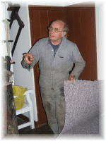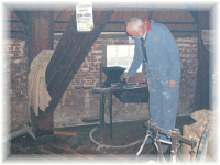 Maar ja, Woldzigt heeft tegenwoordig ook een electromotor, die bij windstilte gebruikt wordt om de wentelas aan te drijven. En dan is het soms wel eens erg rokerig in de molen. Cor Kosmeijer vertelde met smaak het verhaal dat hij wel eens samen met Doornbos op een windstille dag olie had geslagen. In het vuister hadden ze een niet al te beste brandstof gehad en dat resulteerde in een fraai geel wolkendek in de molen. Cor, die een paar meter lang is, liep precies met zijn neus en ogen in dat dikke dek en hoestte en proestte nogal wat. Doornbos, die een stuk kleiner is, snapte maar niet waar die Cor zich zo druk over maakte, hij had immers nergens last van... Dit was niet de eerste oliemolen die ik zag: de geïnteresseerde lezer kan op deze site ook lezen over ons bezoek aan De Wachter en mijn expeditie naar De passiebloem in Zwolle.