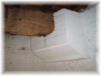 Molens op TexelEr staan een paar meer, maar ik heb er 2 bezocht: korenmolen De Traanroeier in Oude Schild en poldermolen Het Noorden in Oosterend. Een kort verslag per molen volgt. De traanroeierAls een van de trekpleisters voor het lokale toerisme wordt deze molen tot in de puntjes onderhouden. Je krijgt hierdoor wel wat de sfeer van een museum - heel anders dan meer bij het werk gebleven molens zoals de molens van de Slochter Molenstichting: in de Traanroeier ziet alles er even nieuw en gaaf uit. Ter illustratie hiervan heb ik een wat groter plaatje bijgevoegd waarop je de overgang tussen onderkant (veldmuren tot aan de stelling) en bovenkant van het achtkant ziet. Keurig. Let op de constructie: je ziet dat er een gepotdekselde houten bekleding gebruikt is, maar daar zie je aan de buitenkant helemaal niets meer van terug. Daar zie je alleen de later aangebrachte rieten bekleding.