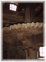 In de kelder zie je nog de machinerie die tot 1963 gediend zal hebben om graan te malen en/of haver te pletten - ze werd electrisch aangedreven. De molen stond toen al jaren stil en zo te zien heeft men in die tijd nogal wat onderdelen uit de molen verwijderd. De eerste zolder, die ik via een wat gammel ogende trap bereikte, en waar wat stoeltjes en tafeltjes als stille getuigen van een bijeenkomst (mogelijk een feestje van restaurantgasten?) stonden maakte me ook niet enthousiast: de legeringsbalken werden hier ondersteund door ogenschijnlijk willekeurige gekozen balken, die ongetwijfeld oud, maar volgens mij absoluut niet origineel zijn. En waar, zo vroeg ik me af, was in hemelsnaam de koningsspil gebleven? Hogerop misschien? Ik zag nog een trap.. dus..